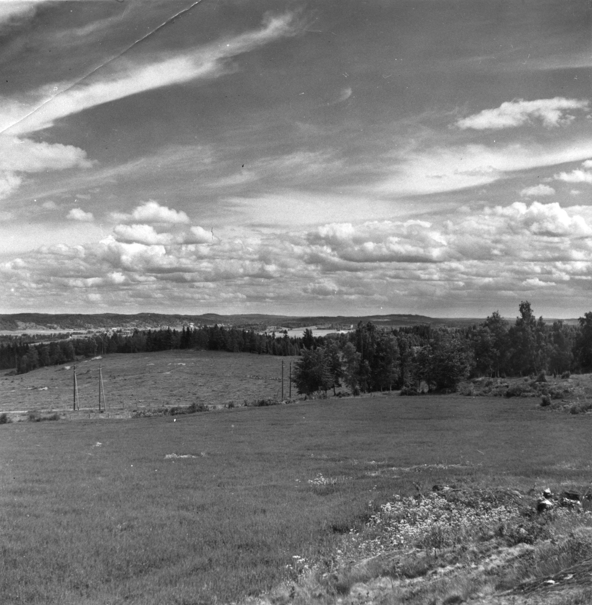 Vy från Lönneberg mot sydost med Rogberga kyrka i bakgrunden.