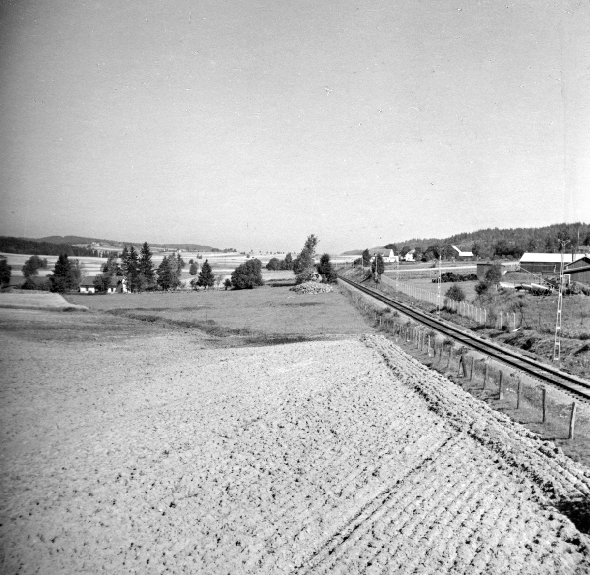 Tenhultsdalan mot Huskvarna från Tullen, med järnvägen, södra stambanan. Till höger vägförvaltningens upplag och lantbruksskolans rektorsbostad. Till vänster Tenhults metallindustri.