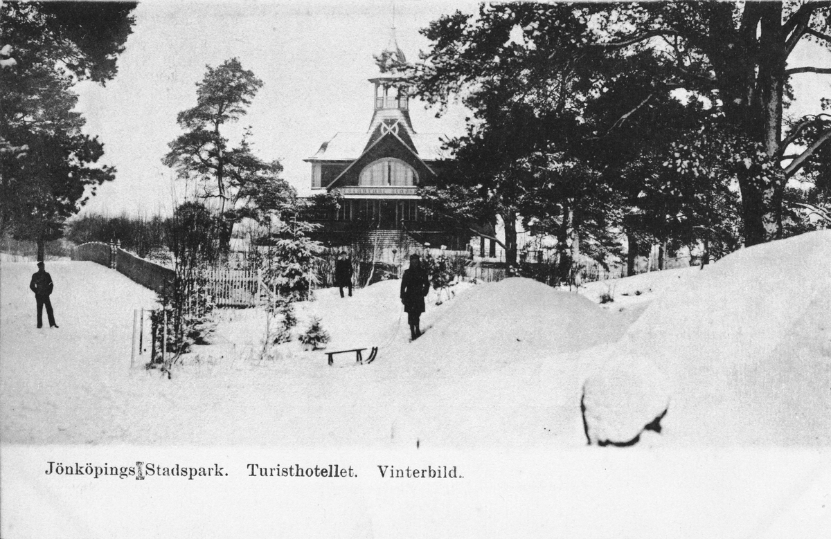Titel: Turisthotellet Alphyddan i Jönköpings stadspark vintertid.