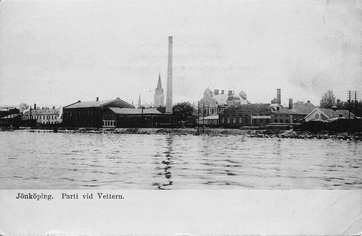 Ett Brefkort med vy över Vättern och östra delen av Jönköping.
