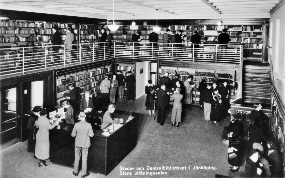 Stora utlåningssalen i Stads- och Centralbiblioteket i Jönköping.