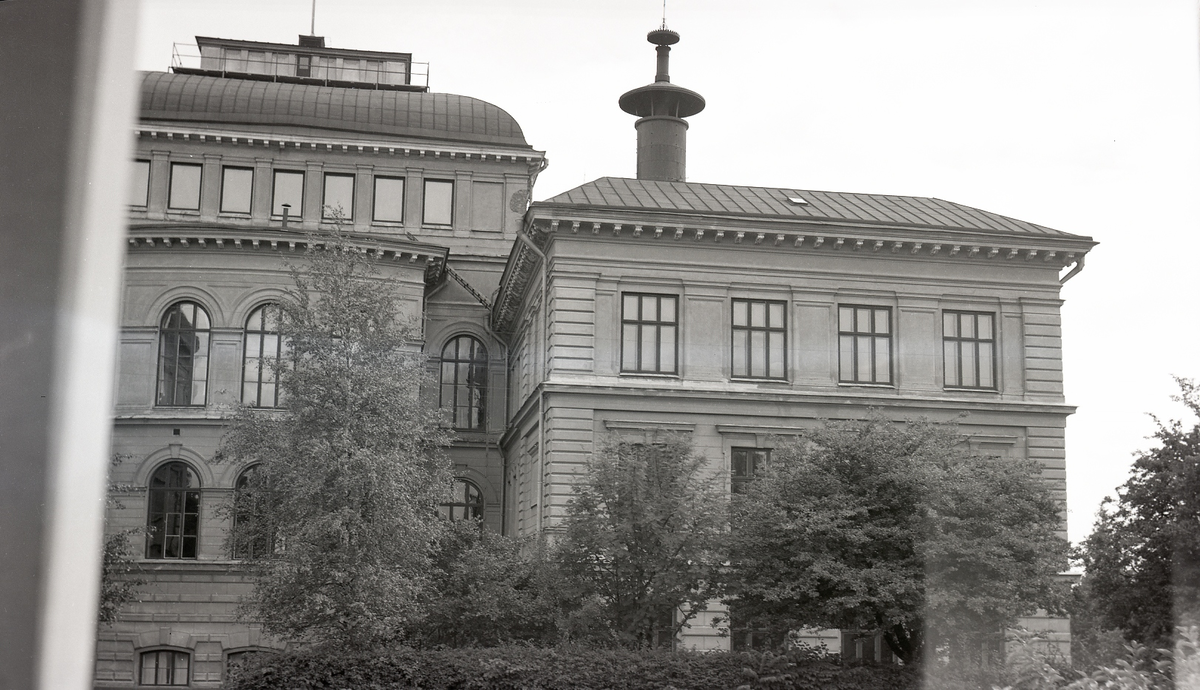 Växjö högre allmänna läroverk, västra fasaden med aula och gymnastiksal, mot dåv. Parkgatan.