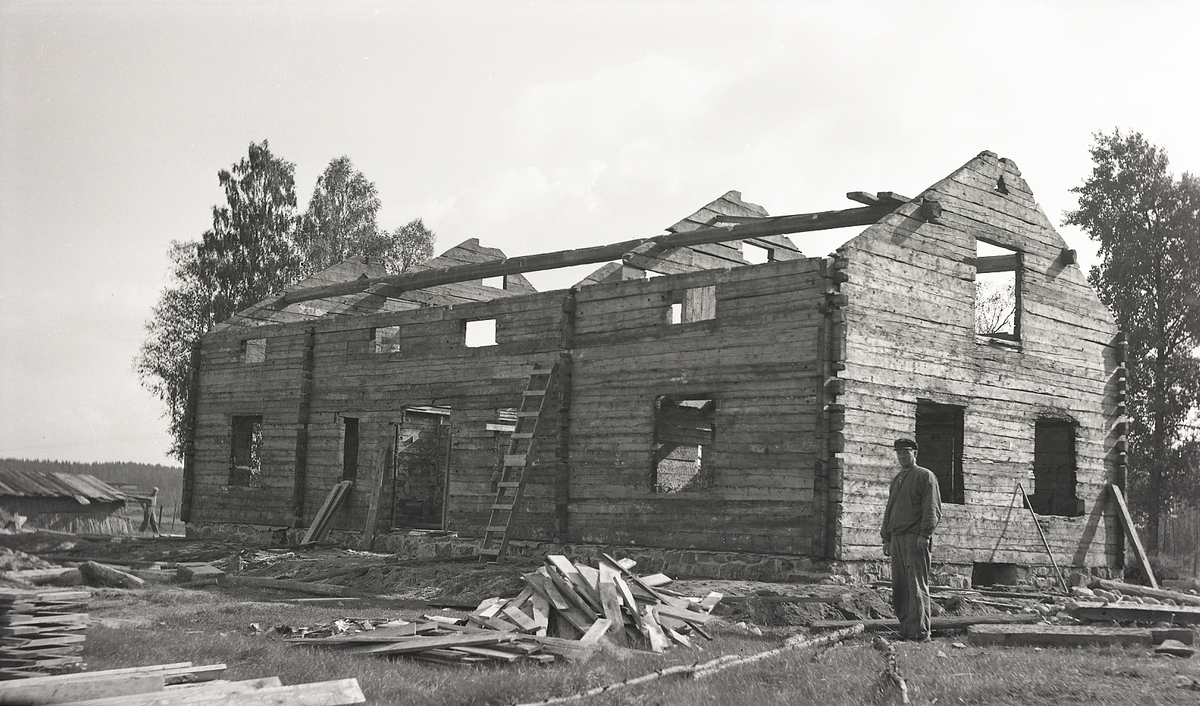 Per Henrik Lings födelsehem, den gamla prästgården i Södra Ljunga, efter nedrivning och flyttning. Man håller på att uppföra den nya