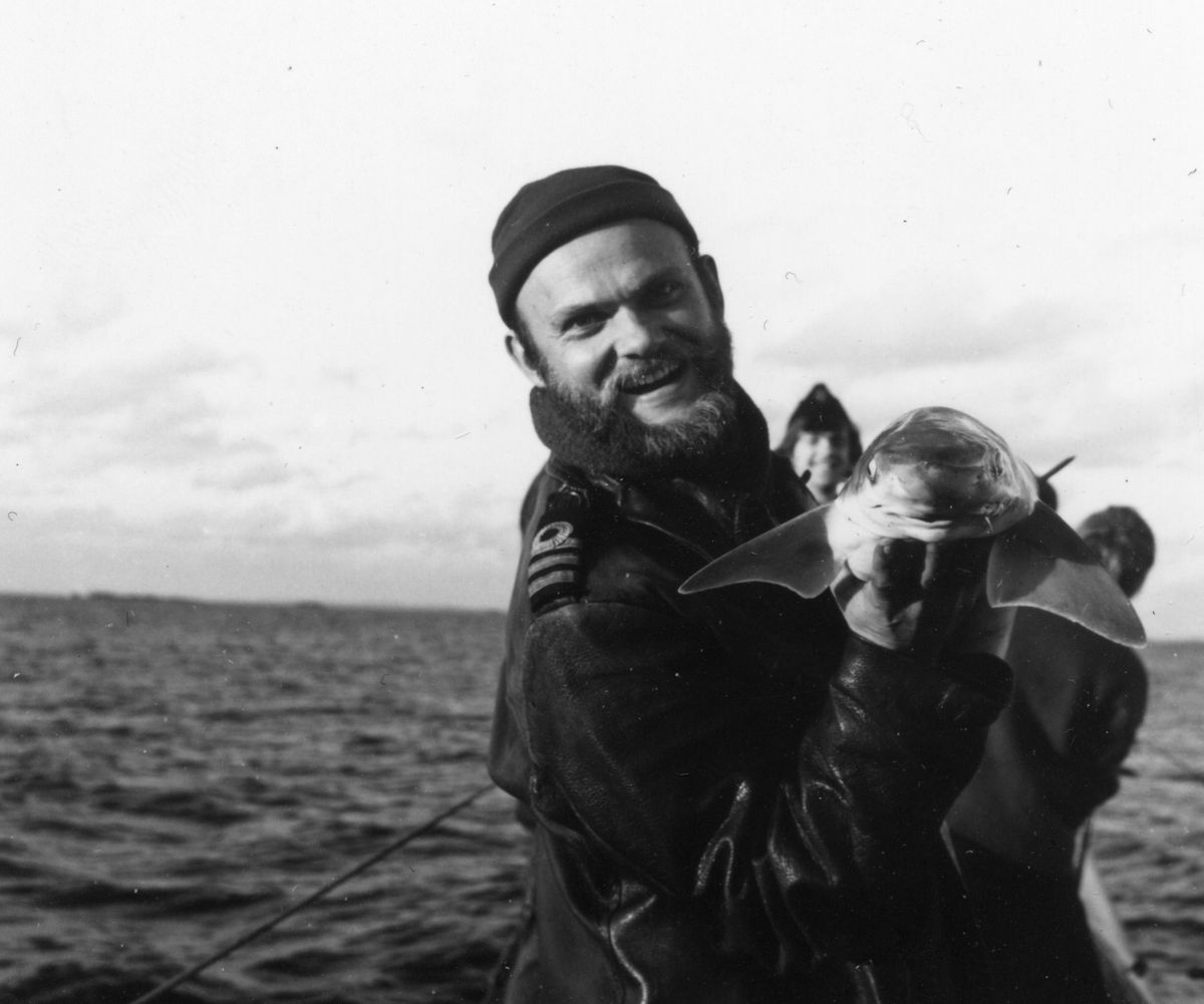 FC Kn Per Hall på ubåten Gäddan med pilkad haj