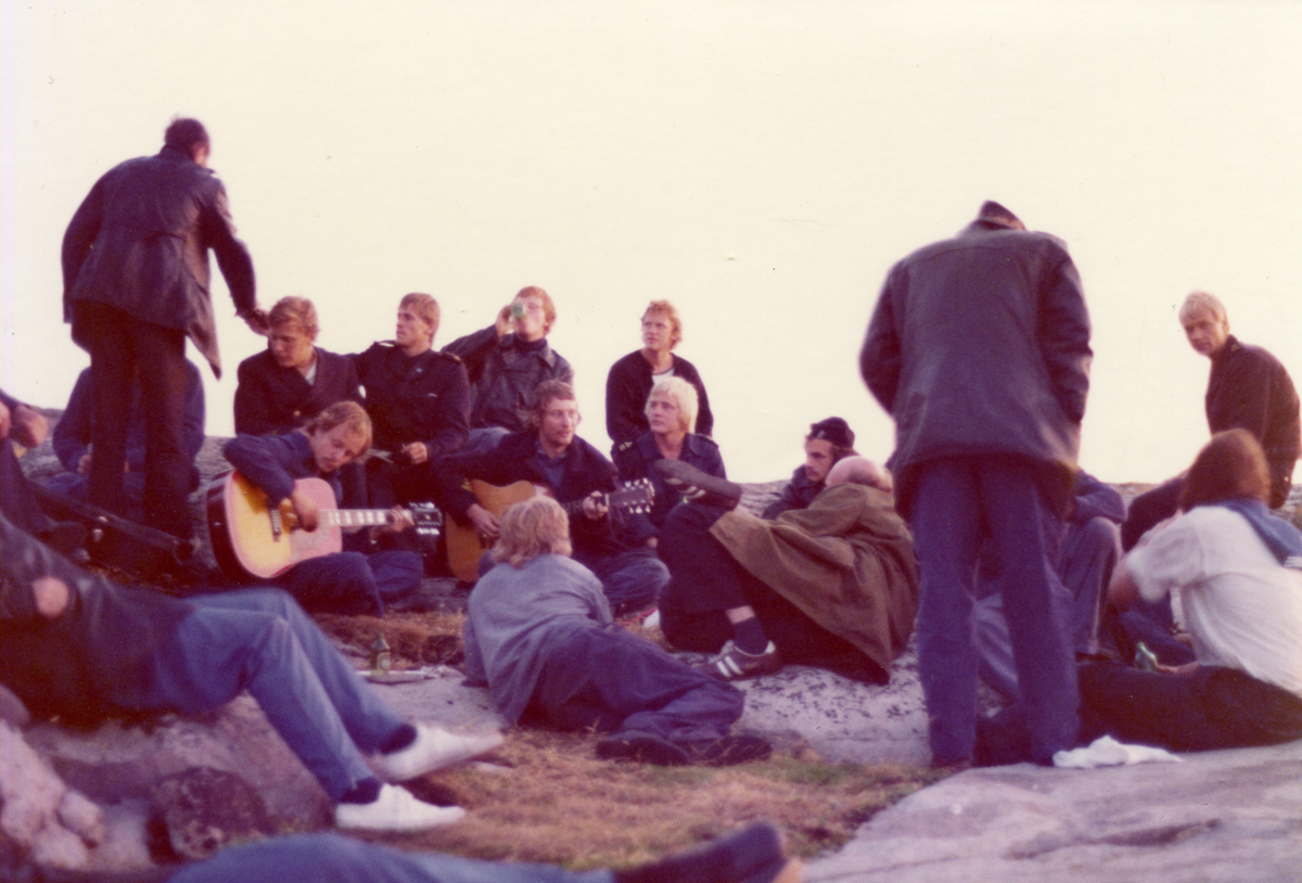 En grupp män på en klippa, svå sitter med girarrer.