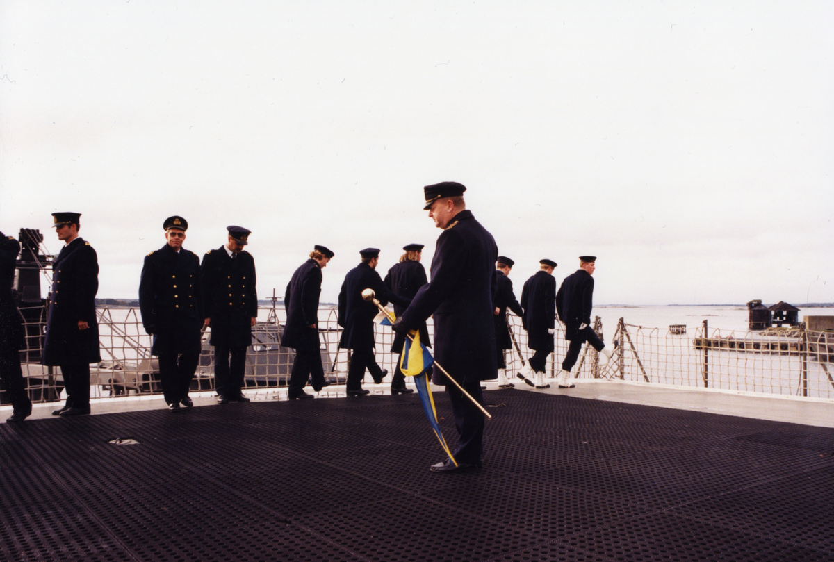 Officerare och sjömän lämnar ceremonin.