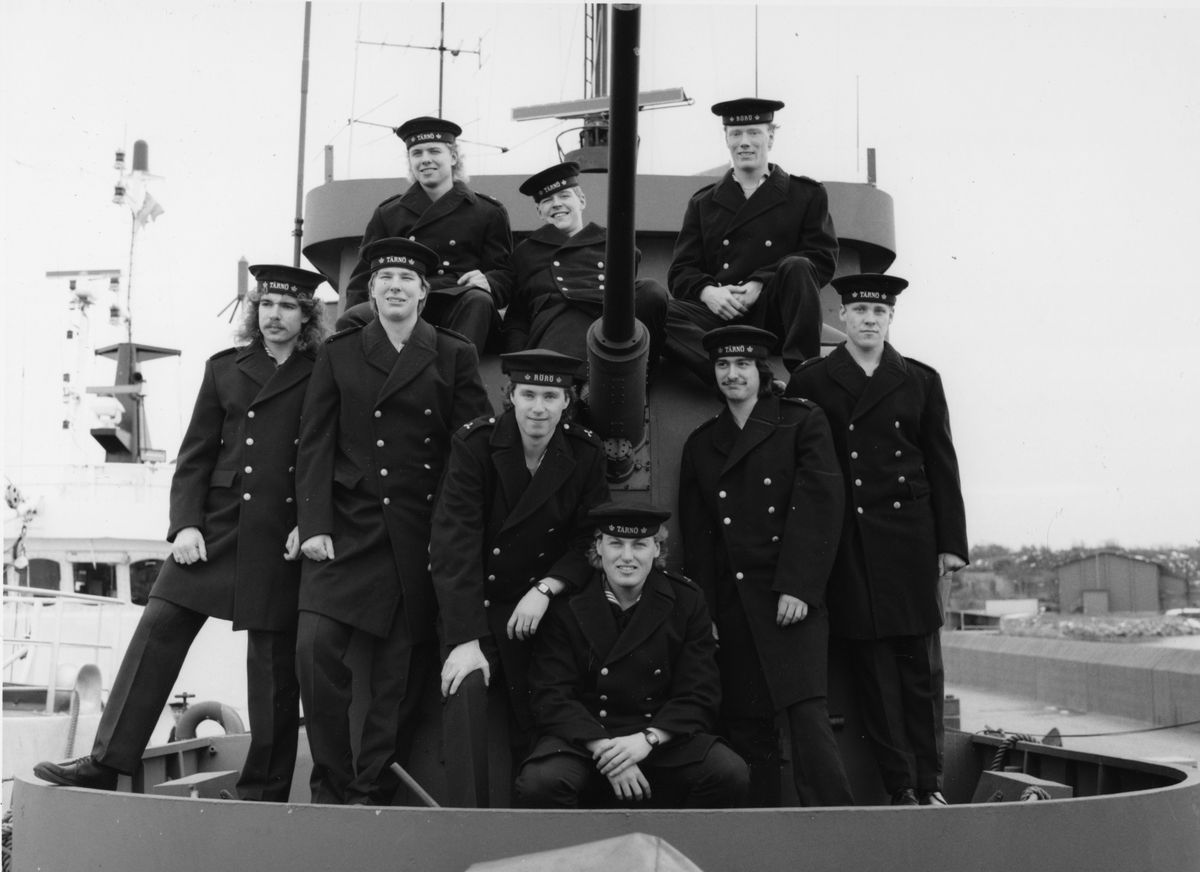 Besättning uppställda på däck, text på mössor är både Rörö och Tärnö.