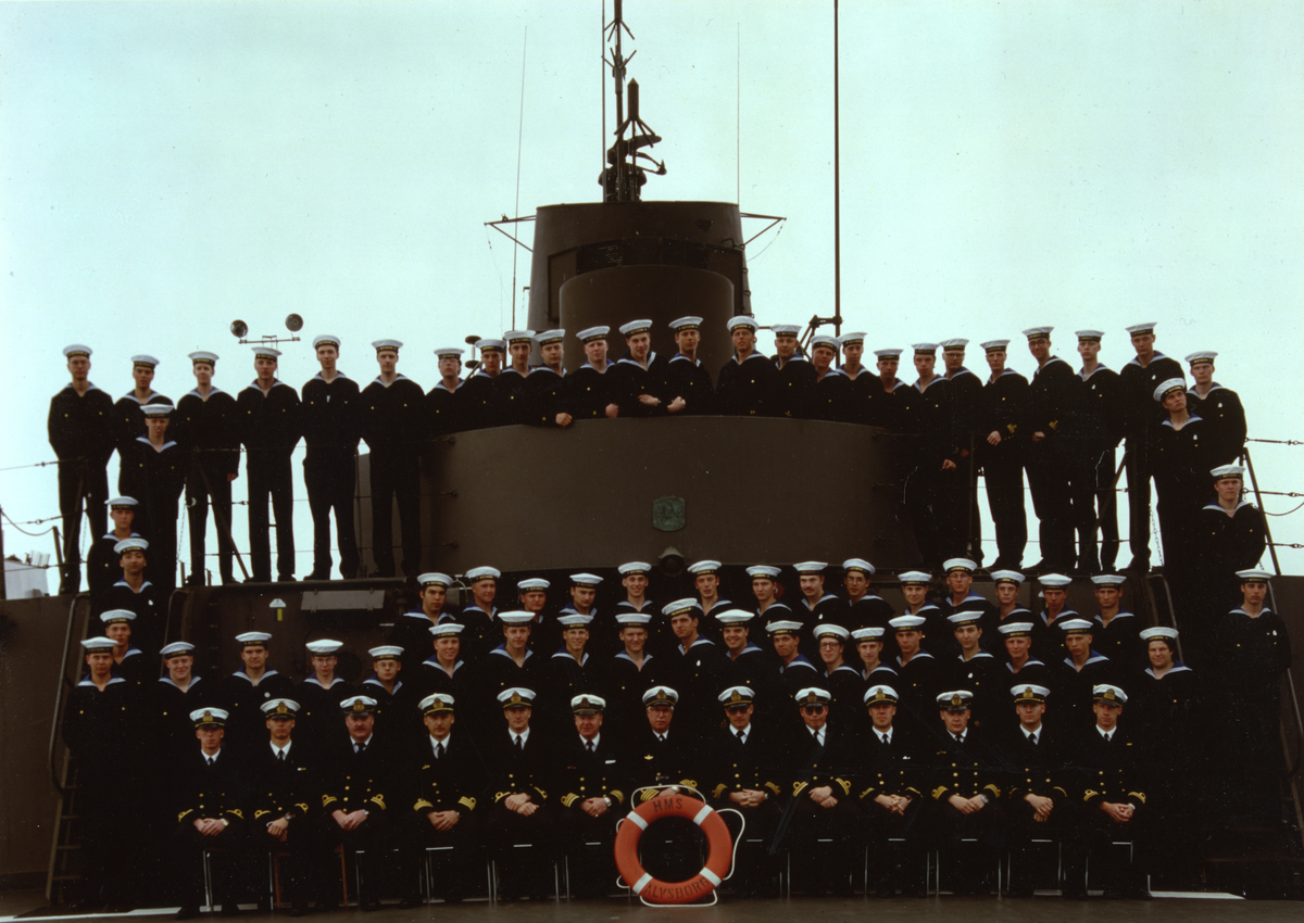 Titel: Grupporträtt på besättning ombord på minfartyget Älvsborg.