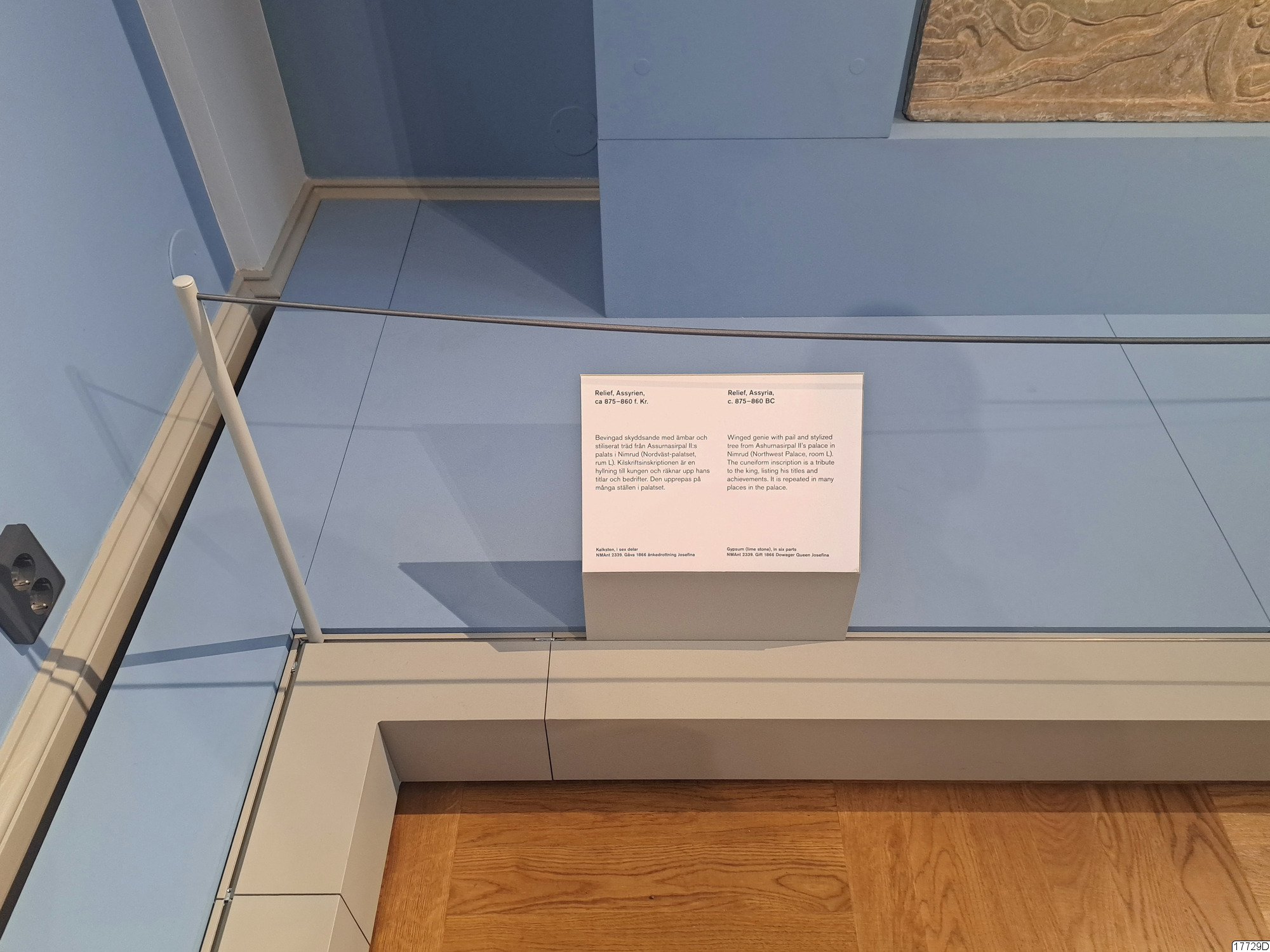 Dokumentation av den assyriska reliefen som tidigare (före 2010) varit utställd på Medelhavsmuseet men som återlämnades till Nationalmuseum någon gång före 2010 och som blev utställd på där 2025. Det finns en kopia i gips på Medelhavsmuseet.