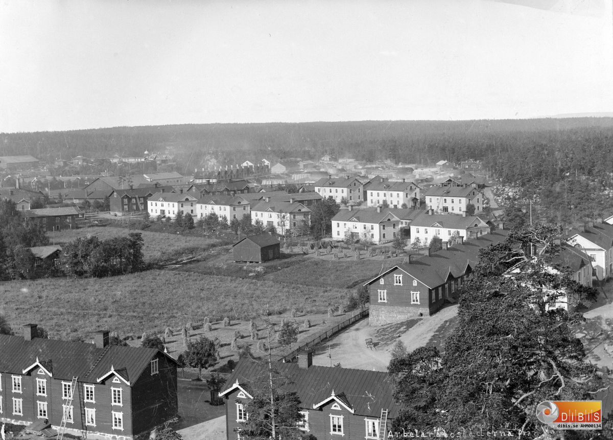 De fem vitrappade husens bostadsområde heter Turbin och de tre vita husen i bakgrunden heter Lejonbacken.