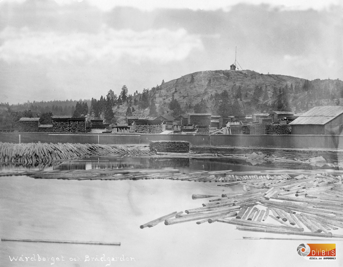 Brädgården i Ljusne med Wårdberget i bakgrunden.