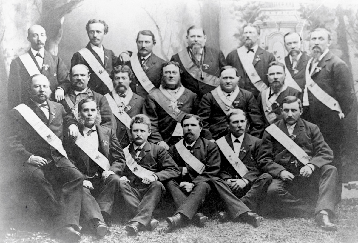Sällskapet Beiramsbröderne, även kallat B-bröderna, B-sällskapet och i senare tid Bejrambröderna. De har rest en minnessten över sig själva på Påskberget vid kanonen. Sällskapet grundades på 1870-talet som en förening liknande Frimurarna och syftet var i första hand att fungera som en social klubb för medlemmarna. Det var endast män som kunde väljas in och det fanns 3 grader inom organisationen. Enligt stadgarna var sällskapets ändamål att dels ha trevliga sammankomster med olika nöjen, dels då lämna bidrag till välgörande ändamål. Bejrambrödernas första konstituerande mötet skedde 1879 och då valdes rektor Herman Rodhe till Stormästare. Fotot anges vara taget under 1880-talet.