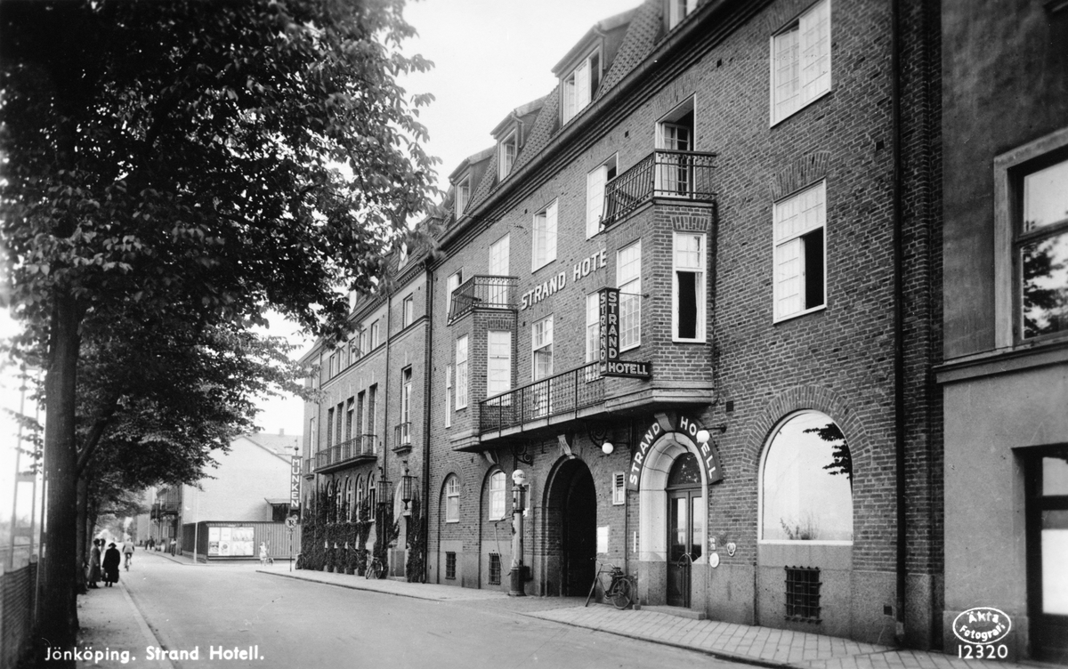 Strand hotell vid Norra Strandgatan i Jönköping. I samma kvarter på hörnet ligger restaurang Munken.