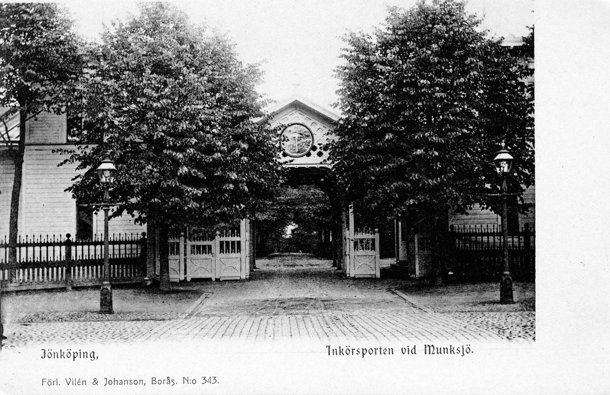 Inkörsporten till Munksjö AB i Jönköping. Det ursprungliga pappersbruket grundades 1862 i Jönköping av Johan Edvard Lundström och Lars Johan Hierta. Bruket fick sitt dåvarande namn 'Munksjö Pappersbruk' efter placeringen vid Munksjöns västra strand. 1890 bildades Munksjö AB.