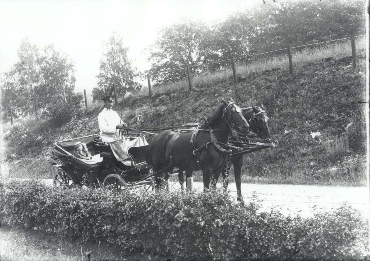 En så kallad landå, hästskjuts med Karlsson och en flicka, vid Falsterbo i Hjorteds socken.