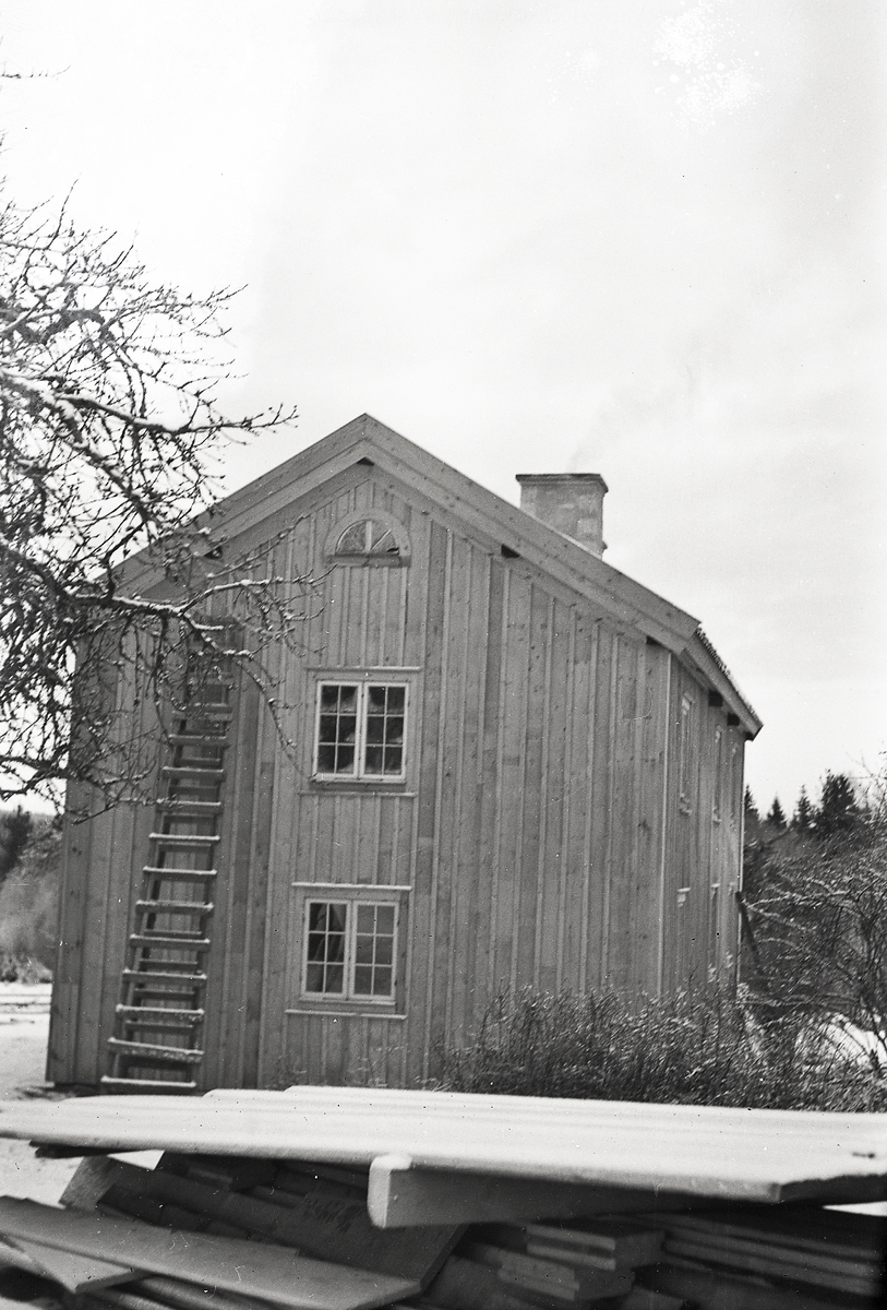 Mangårdsbyggnaden under ombyggnad. Ena gaveln.