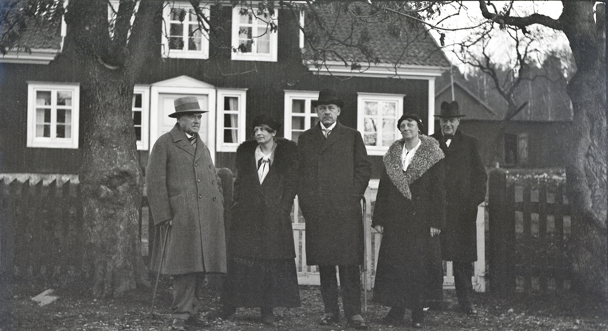 Landshövding August Beskow (i mitten) med fru på besök i Alsterfors, ca 1930-35.