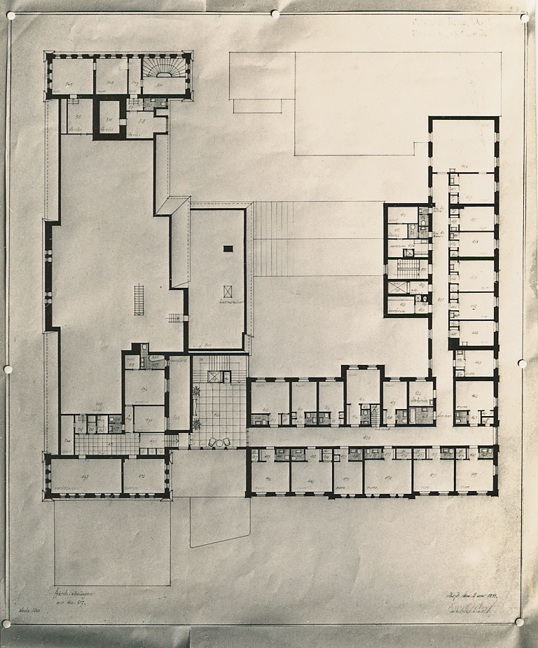 Stadshotellet, Växjö. Planritning över 4:e våningen (ritning till förändring), daterad 11 november 1939.
