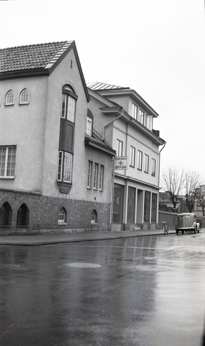 Grosshandlare Hjalmar Nilssons fastighet till vänster. Huset till höger inrymde länge Betty Larsons fotoateljé,