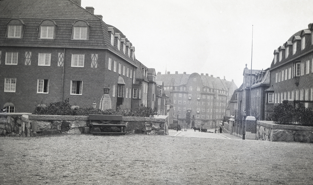 Titel: Hörnet Bragevägen/Engelbrekts Kyrkogata i området Lärkstaden på Östermalm, Stockholm. Bostadshus i nationalromantisk stil.
