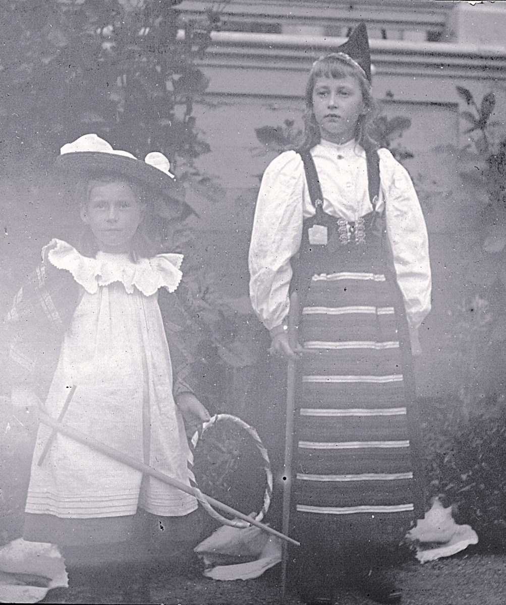 Foto av Ruth Schotte till vänster och Ingrid, 1896, Gröndal (enligt bildtext i album).