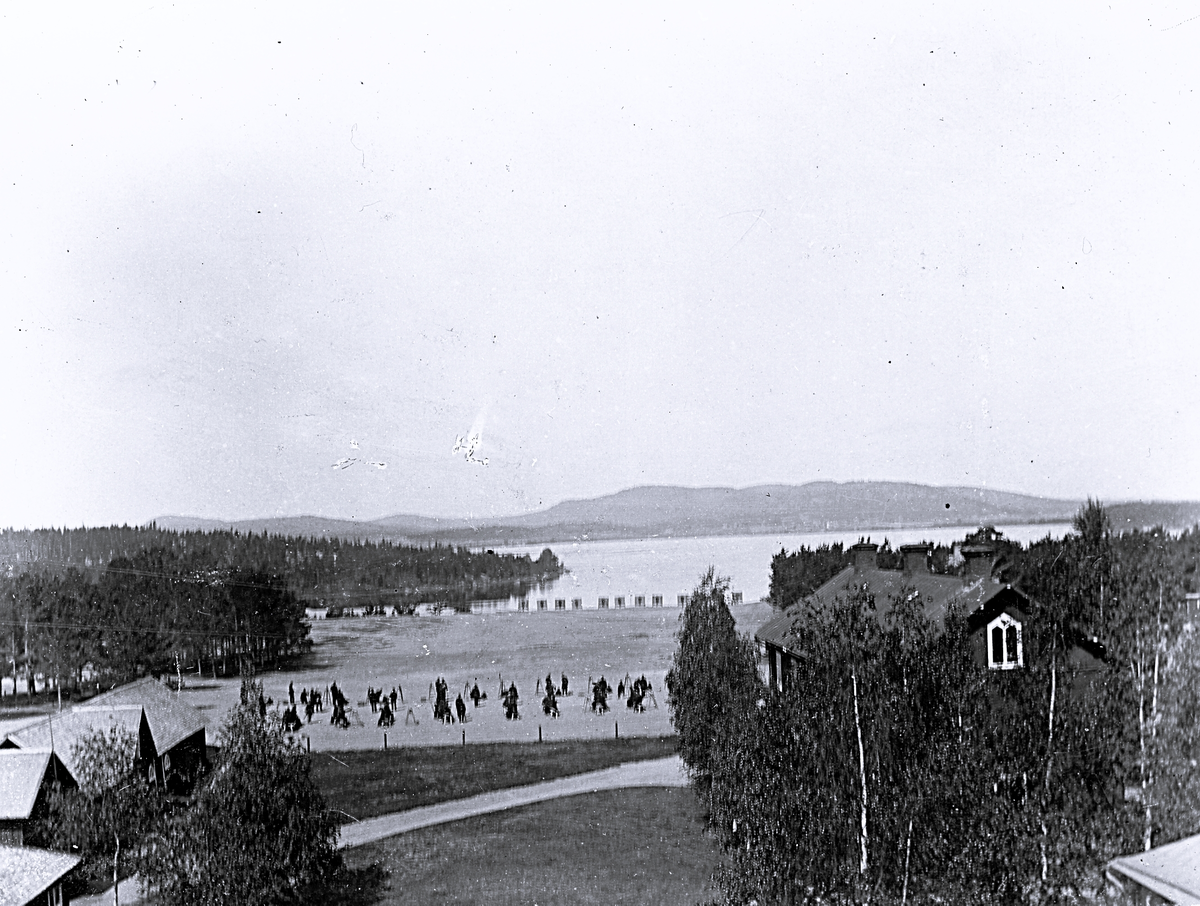 Utsikt över Florsjön från officersbyggnaden där man även ser en skjutövningsbana för officerarna.
