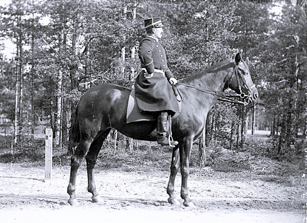 Foto av major Schenström sittande på en häst, 1896 (enligt bildtext i album).