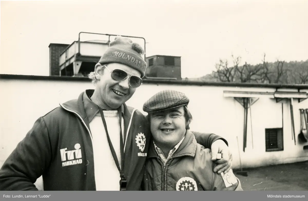 Porträtt av Alf och Kenneth. Alf var ledare i Mölndals IF, som spelade högt upp i divisionen. Fotografi taget vid Mölndals konstisbana vid Ågatan i Trädgården, Mölndal, ca 1970-1976.