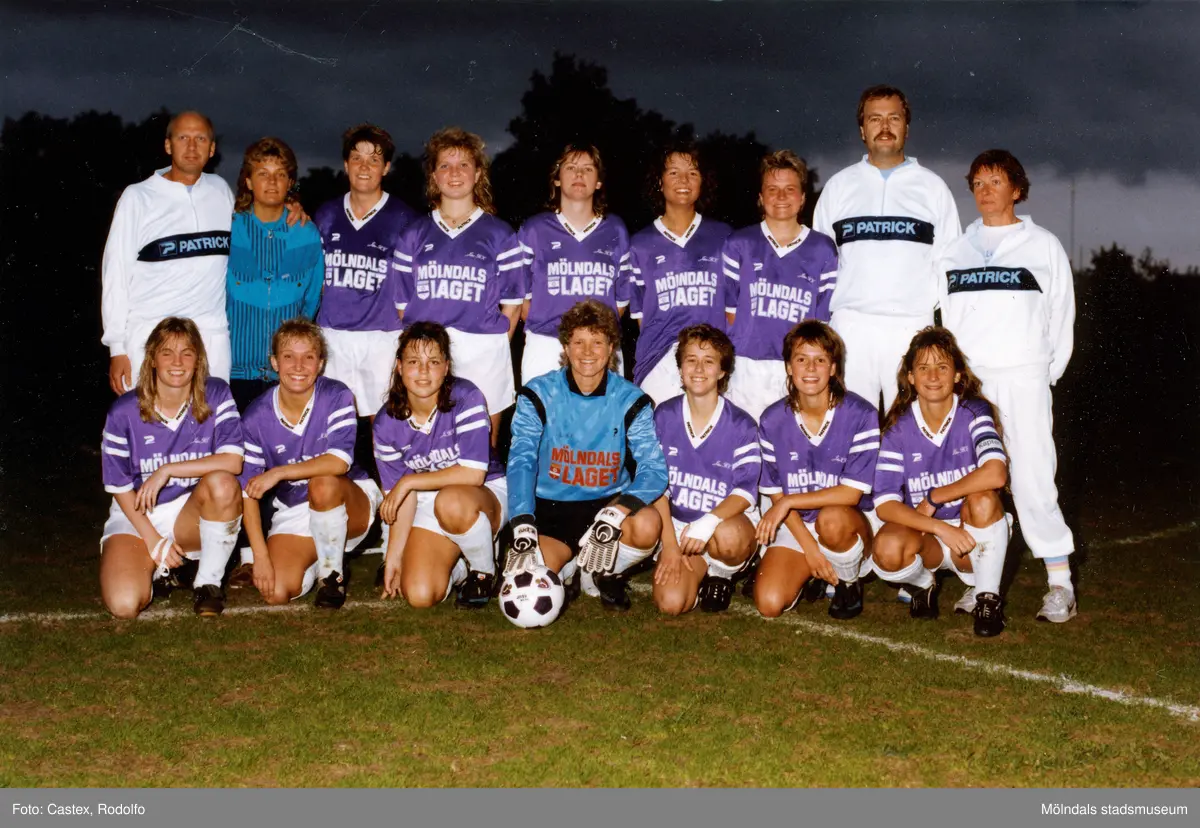 Lagbild av fotbollslaget Jitex BK i Mölndal, år 1988. Fotografiet användes till julkort.