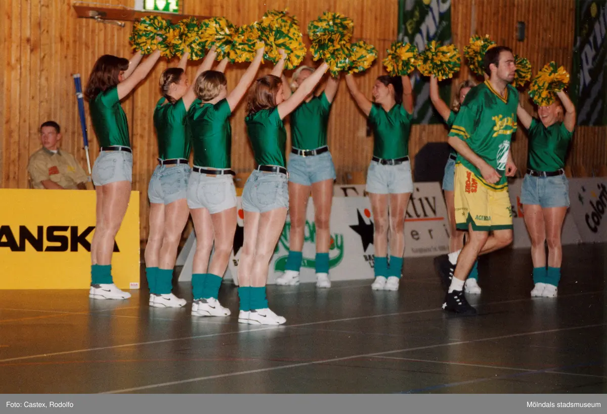 Kvarnby Basket Cheerleaders uppträder i Mölndals idrottshus/Aktiviteten i oktober-november 1995.