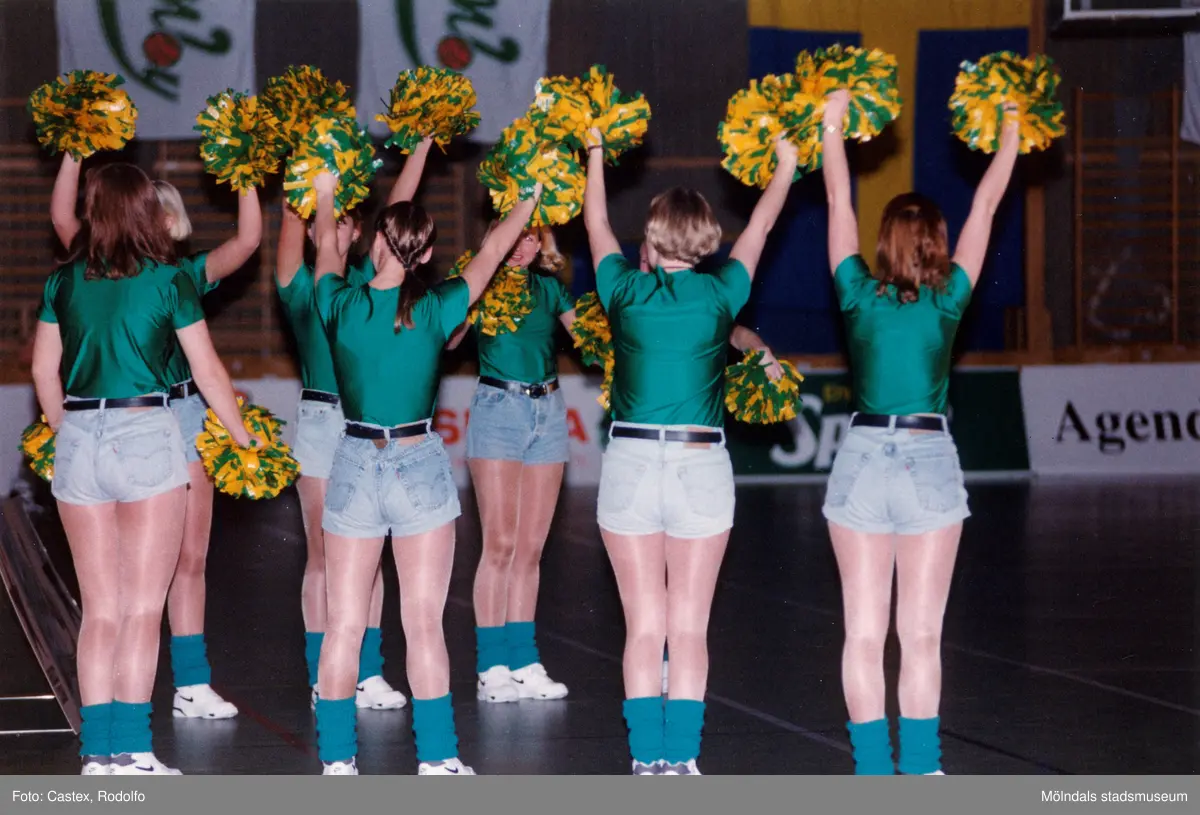 Kvarnby Basket Cheerleaders uppträder i Mölndals idrottshus/Aktiviteten i oktober-november 1995.