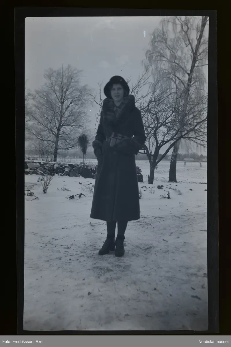 Porträtt av Frida Anna Elisabeth Fredriksson, utomhus i snö.