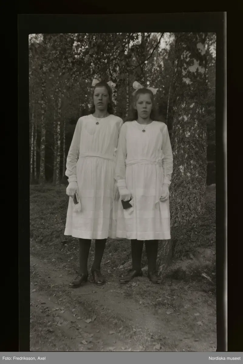 Konfirmationsporträtt av två unga kvinnor, möjligen systrar.