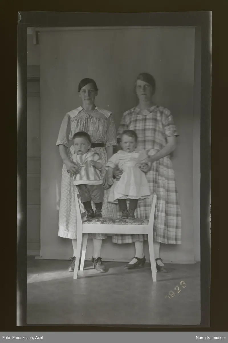 Porträtt av två kvinnor som håller varsitt litet barn.