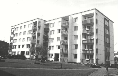 Huset uppfört av HSB i Falkenbergs Bostadsrättsförening Gästgivaregården 1968.
