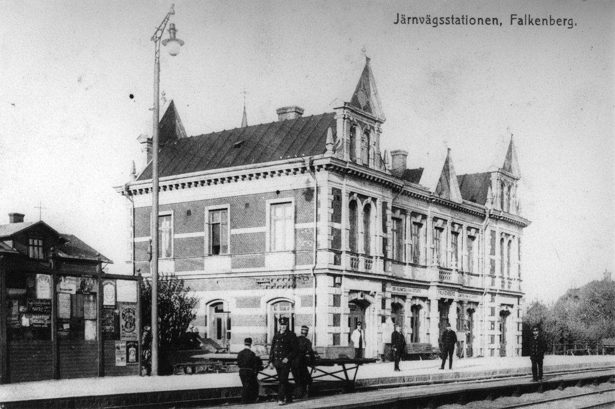 Foton/vykort "Järnvägsstationen, Falkenberg."