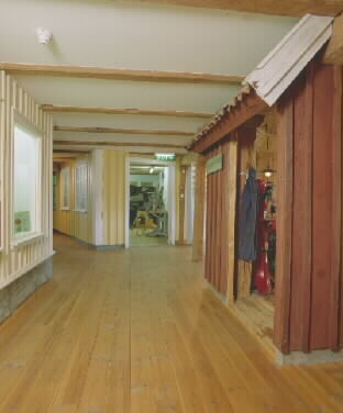Foto över basutställningen av stadsmiljön på museets andra plan.