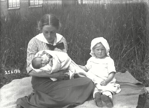 Maria Persson med sin lilla dotter Greta och bebisen Karin.