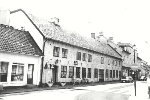 Byggt i mitten av 1700-talet. Brandförsäkrades 1797. Byggherre troligen borgmästare Johan Falkman Sörensson. På affärsskyltarna kan man läsa Café Hwitan.