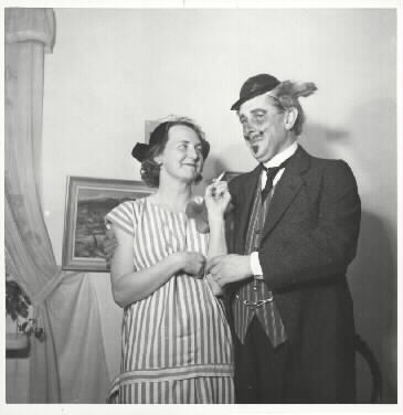 Text på baksida av foto. Stina på maskerad hos Marianne o B-G Gilmark. Förklädet som Stina bär finns i museets samling.