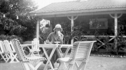 Ingeborg Kronvall, g Hellberg. Hon är iförd ny hatt , inköpt till sin småskolärarexamen.