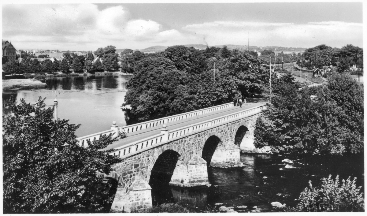 Upptill höger syns den lilla kuren som bomvakten för järnvägsövergången höll till. En bomvakt var "Bomma Sigrid". Jämför vykort på post nr. 01220:8, där är kuren bortredicerad.