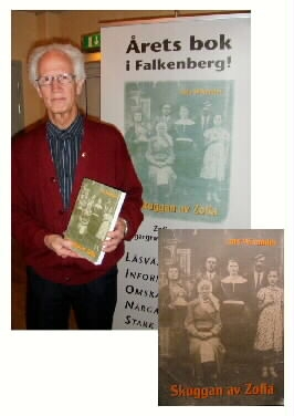 Årets bok i Falkenberg 2006 var SKUGGAN AV ZOFIA av Lars Wikander. Den handlade om den unga polskans livsöde som slutade i en grav på Skogskyrkogården 1945. Fotot är från Lions Clubs presskonferens på Värdshuset Hwitan 7/12. TV4 gjorde ett inslag och tidigare på förmiddagen hade också Västnytt gjort ett reportage.