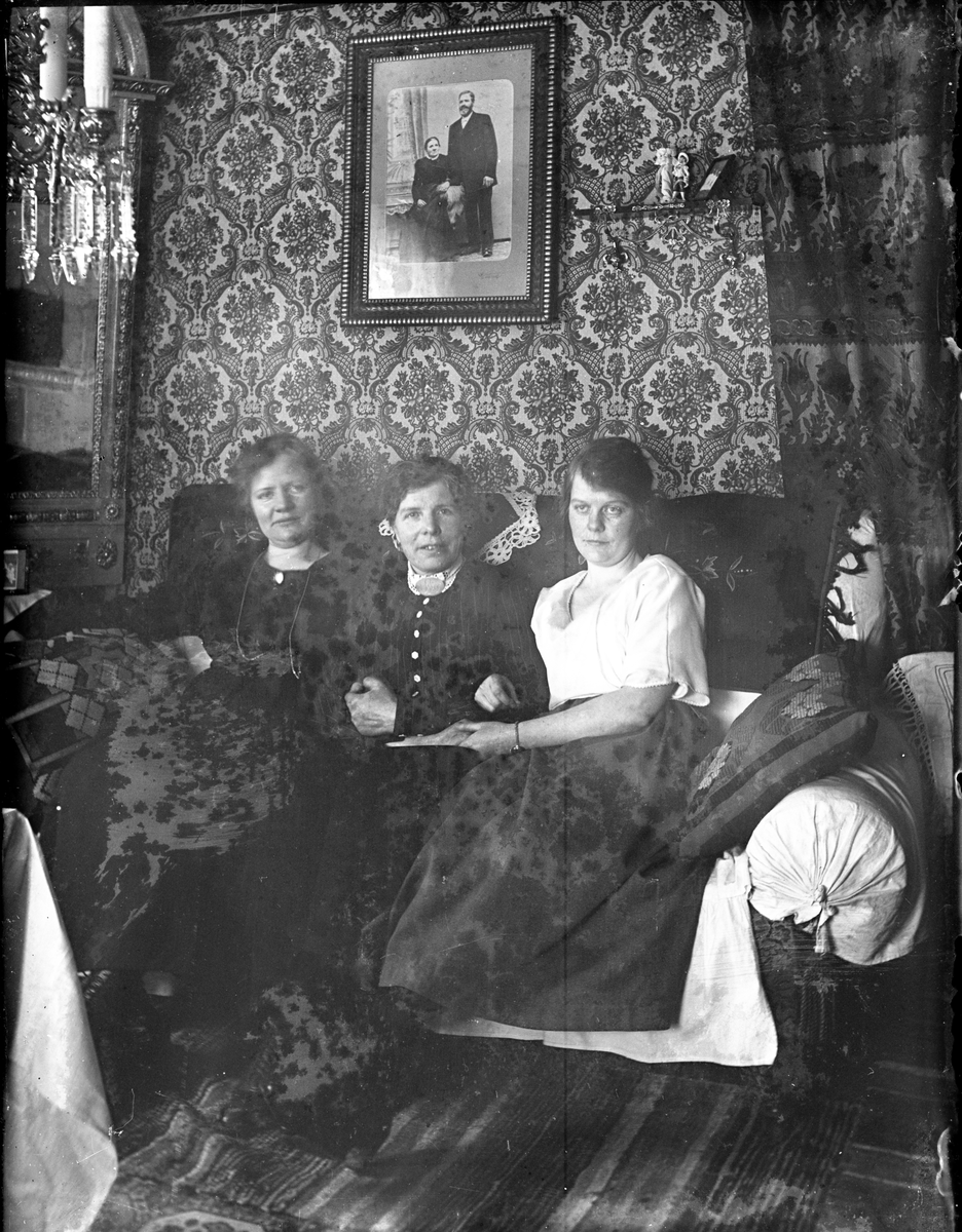 Dals Rostock. Tre kvinnor som sitter i en soffa