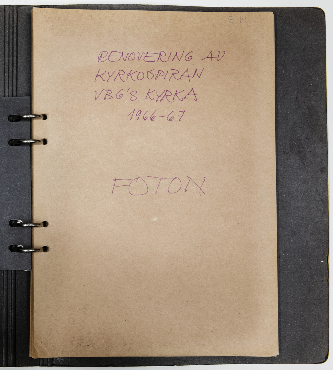 Vänersborg. Arkitekt Per Molnit dokumentation av arbetet med att renovera kyrkspiran 1966-67