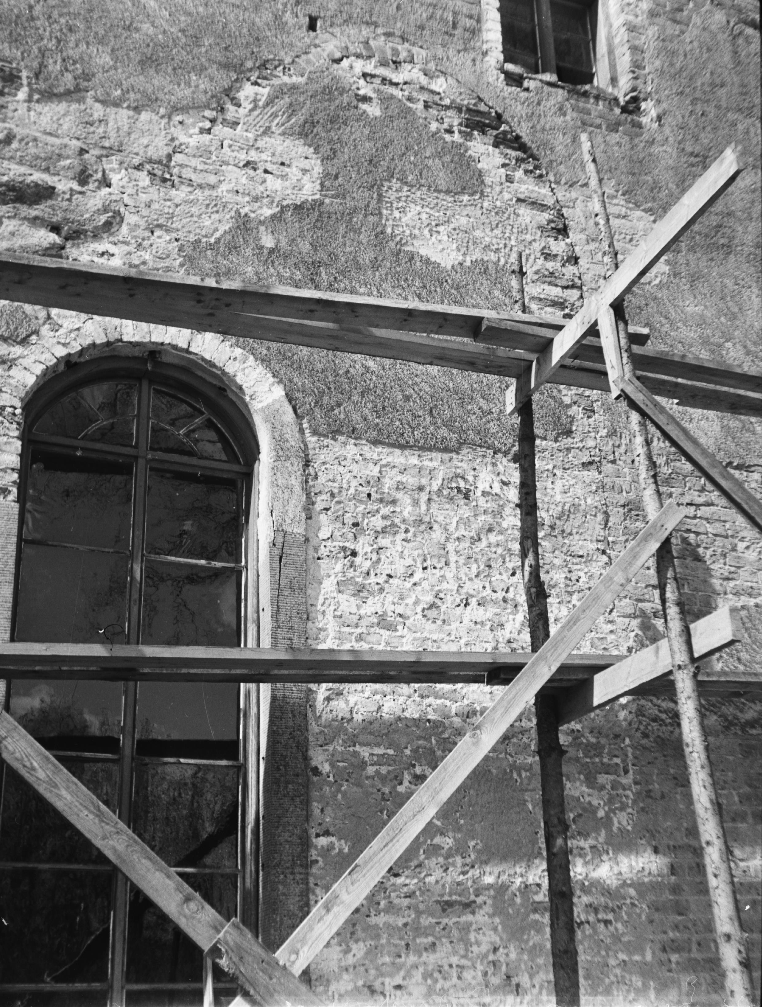 Kyrkans gavel mot öst: spår av stort ursprungligt fönster till höger om och ovanför det nuvarande söderfönstret.