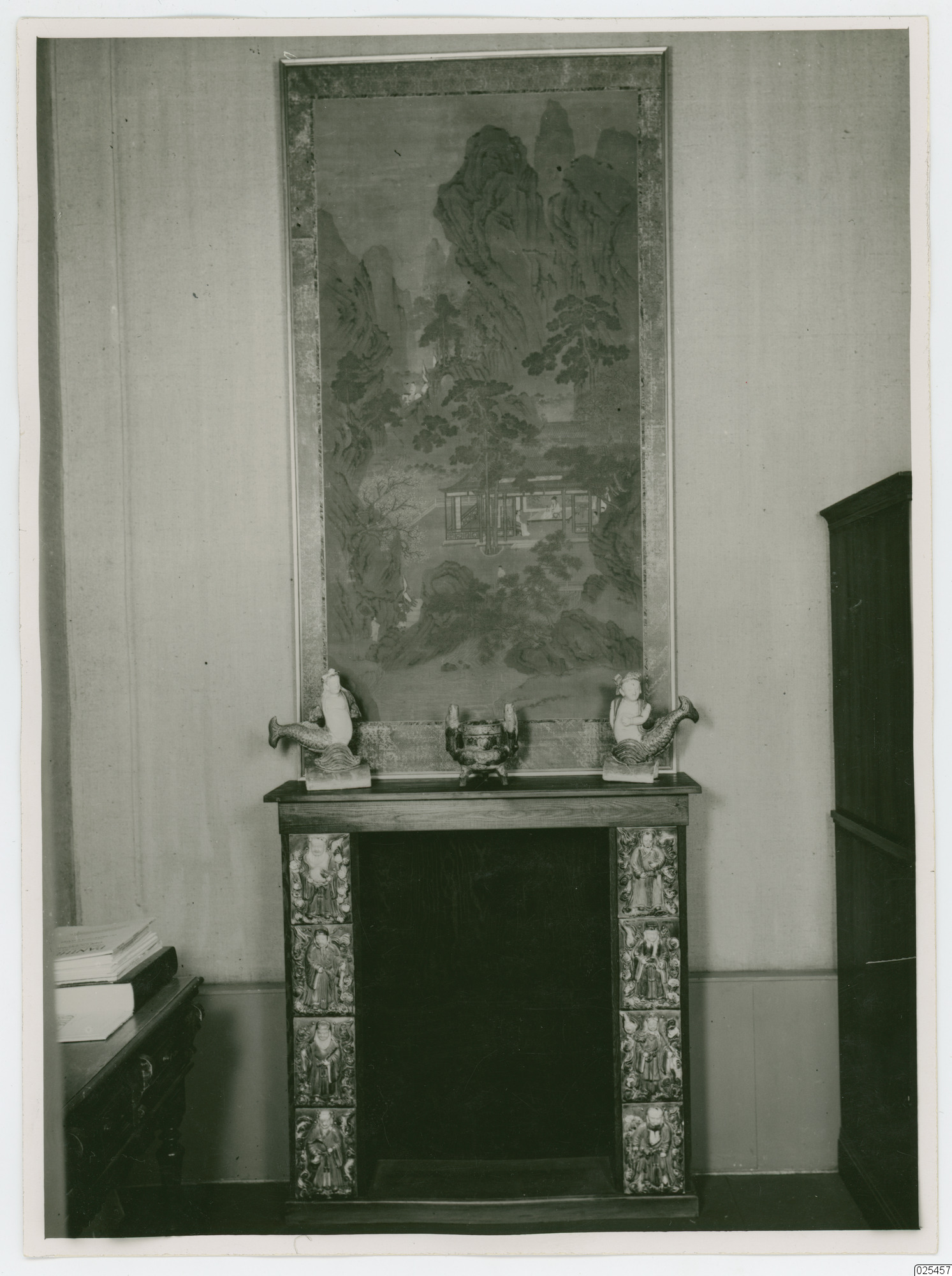 Målning av chiu ying, över öppen spis.