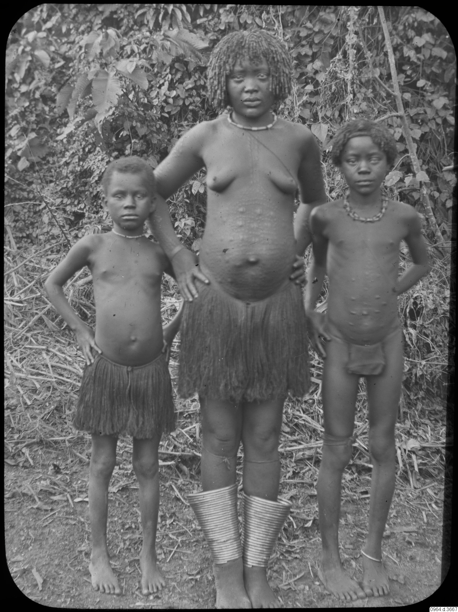 Kvinna med två barn. Bamongo. Övre Kongo./ Bamongo i Balola. Infödda, Tkau? Lulanga. Övre Kongo. 1911. J.H.