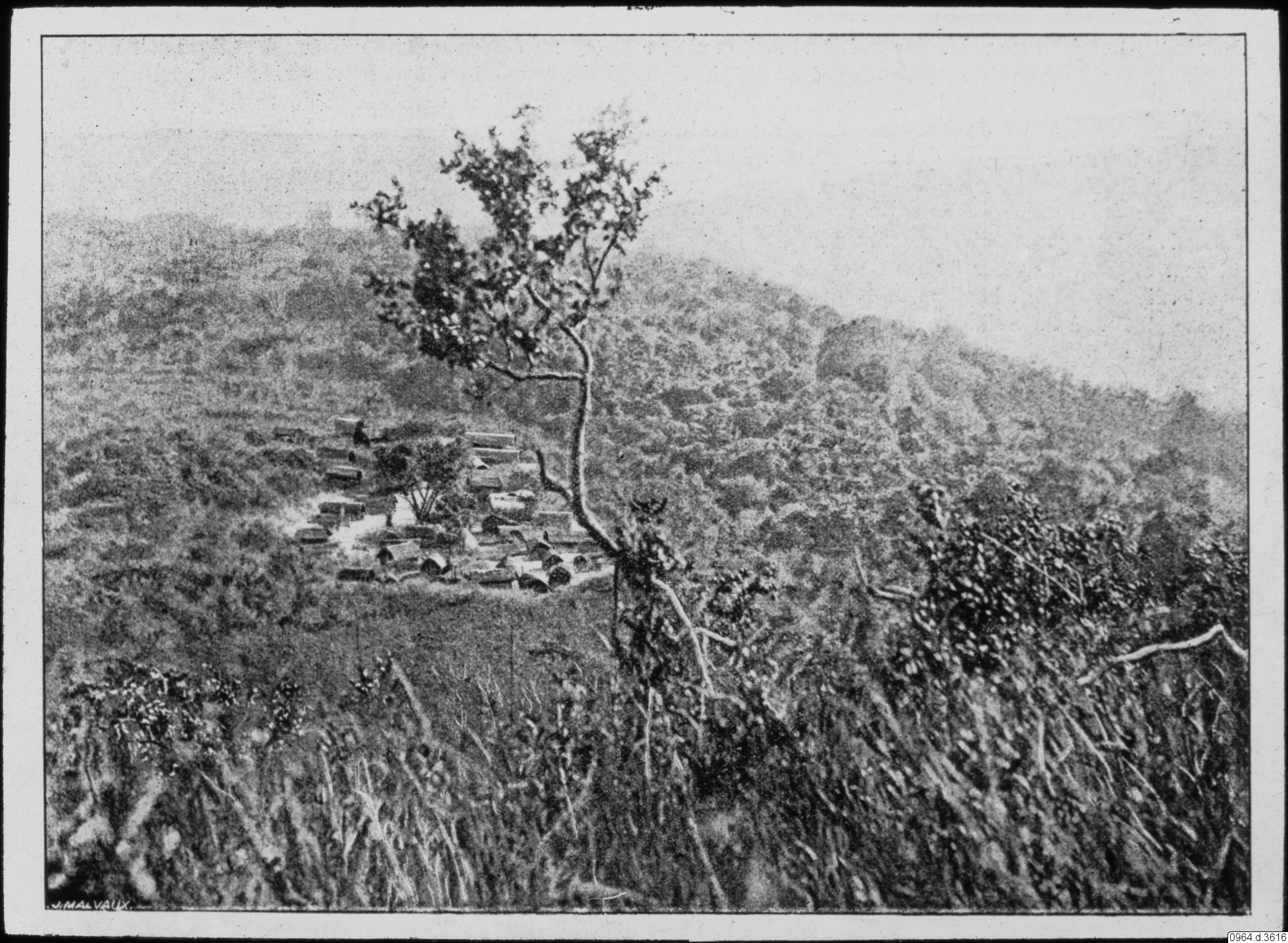 Kongolandskap med en by.