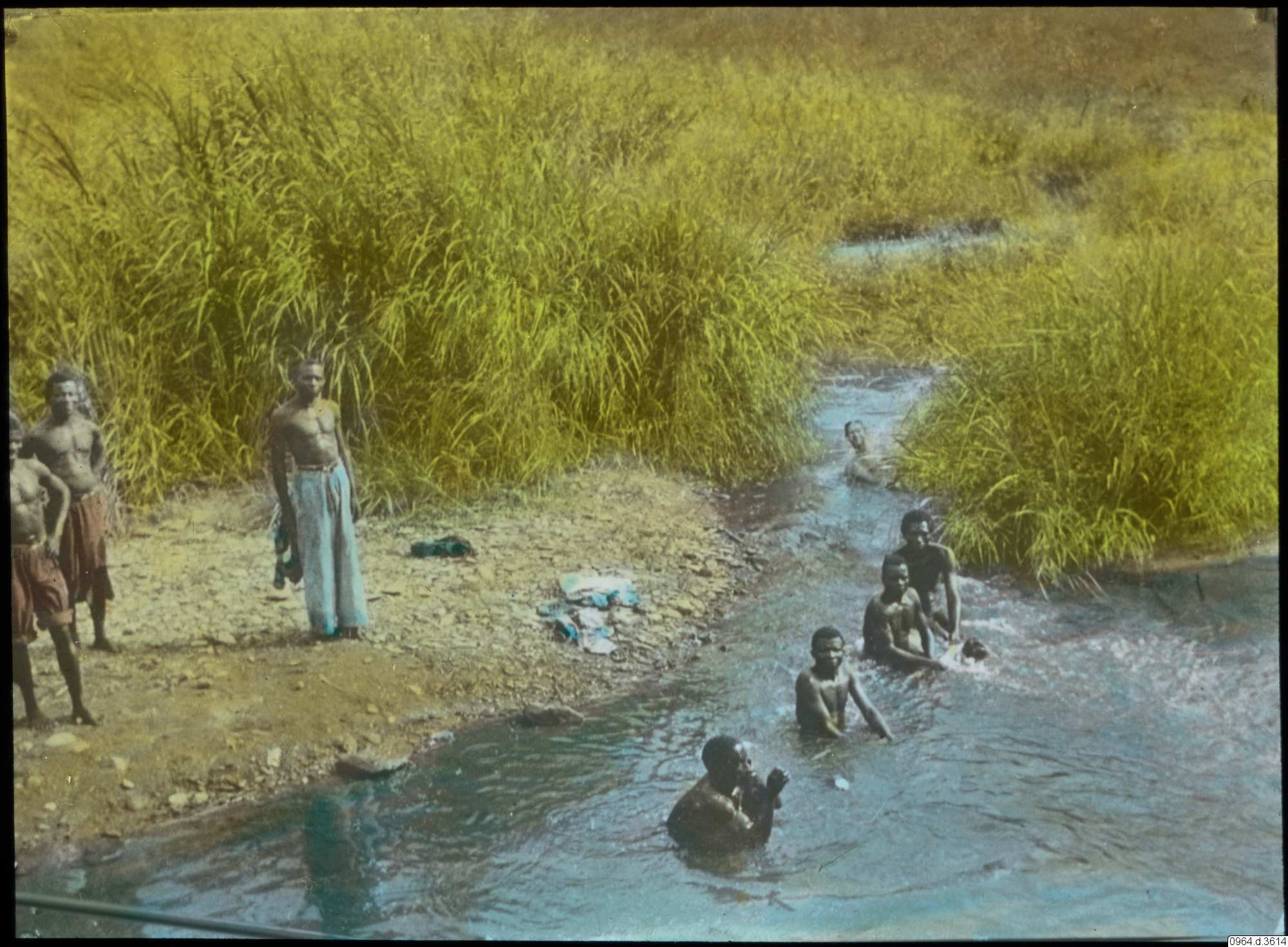 badande, kläder, gruppbild, vatten, strand, män, fotografi, photograph